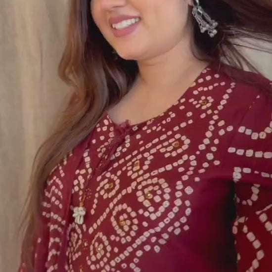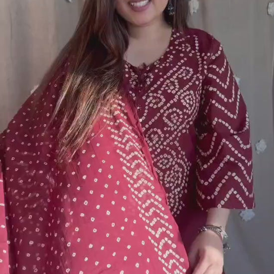 Maroon Bandhani Kurta Set with Dupatta